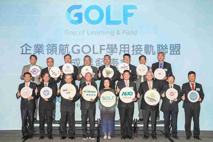 GOLF学用接轨联盟集结企业和学校的力量,,,,打造「学用合一、、、产学接轨」的创新合作平台 (前排左起:淡江大学副校长何启东、、、、元智大学校长林启瑞、、、纬育执行长许延岳、、、纬创总经理暨执行长黄柏漙、、、教育部政务次长范巽绿、、、PA直营董事长暨执行长彭双浪、、、仁宝总经理暨执行长翁宗斌、、、、大同大学校长何明果、、、、圣约翰科大校长艾和昌;后排左起:明新科大校长林启瑞、、龙华科大校长葛自祥、、、台湾科大校长廖庆荣、、中兴大学副校长郑政峯、、、中央大学校长周景扬、、、台北科大副校长任贻均、、、中华科大副校长石大明、、明志科大校长刘祖华)
